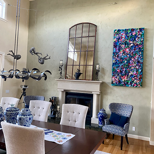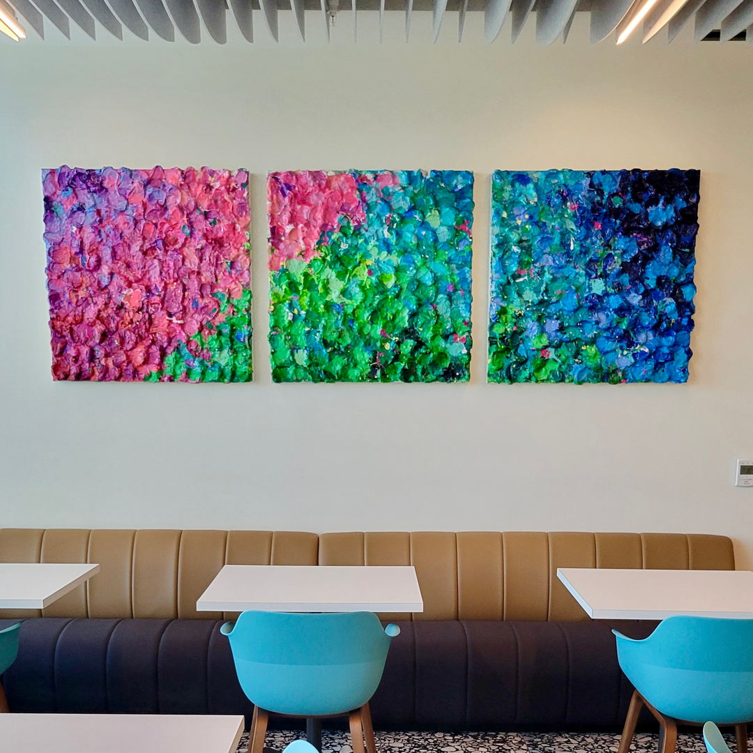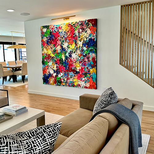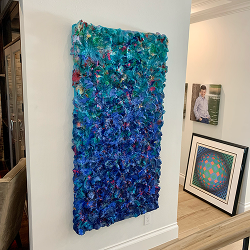 Experience how these textural abstracts transform sophisticated spaces, creating focal points that anchor rooms and evolve with changing light throughout the day. Each installation represents a unique dialogue between the artwork and its environment.